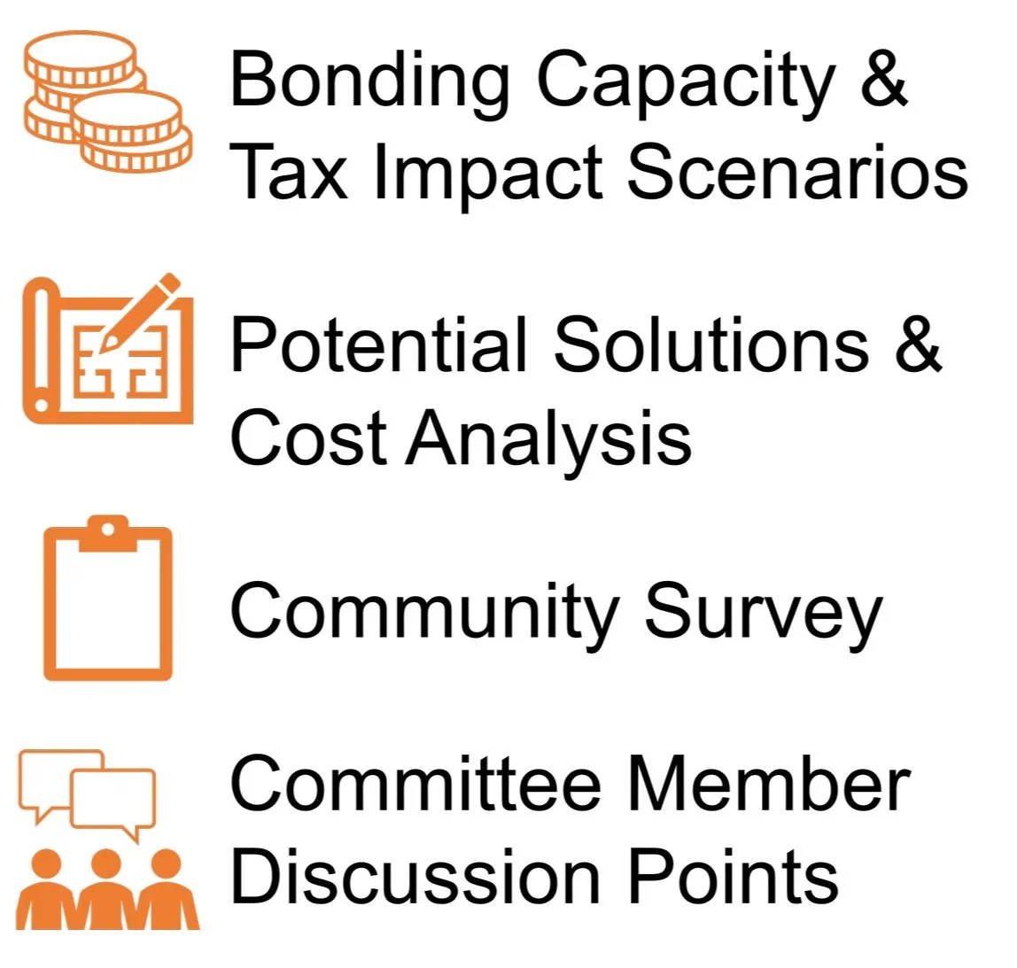 Review assessments, capacities, scenarios, and project solutions brought forth by school administration and consultants.